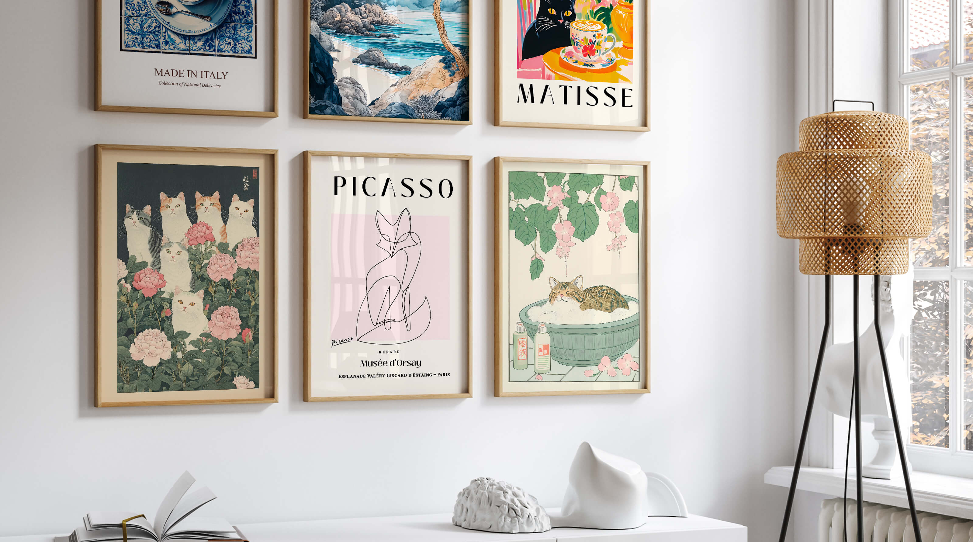 Een zorgvuldig samengestelde collectie Japanse prints met rustgevende dieren en verfijnde natuurlijke elementen. Perfect om elke ruimte een vredige en stijlvolle uitstraling te geven.